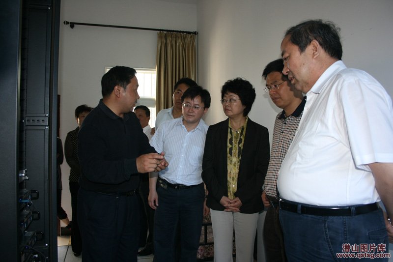 周和平一行在县图书馆中控机房 摄影:涂晓华